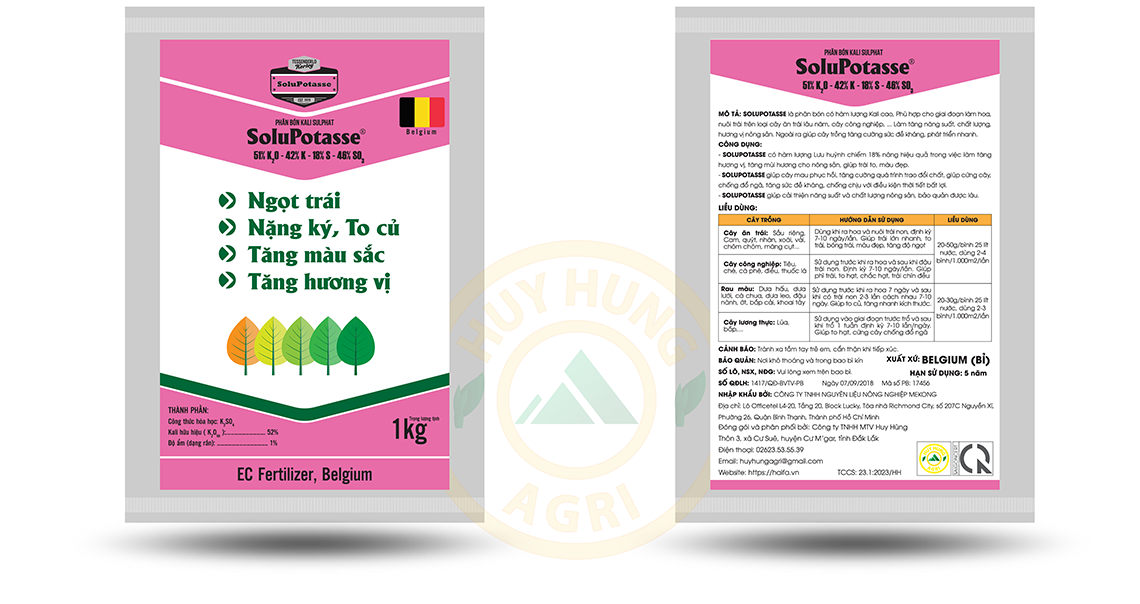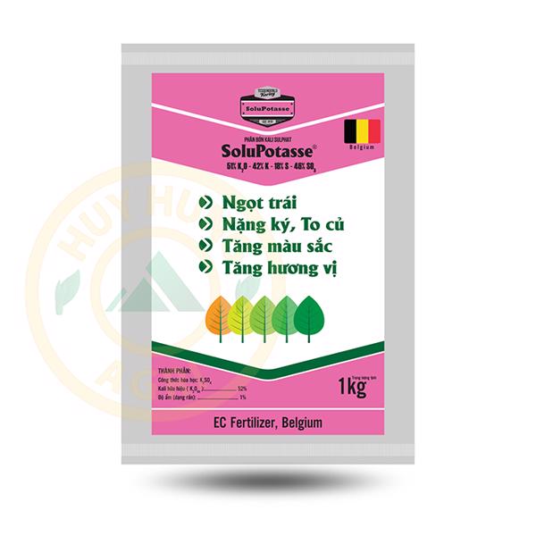 SOLUPOTASSE là phân bón có hàm lượng Kali cao, Phù hợp cho giai đoạn làm hoa, nuôi trái trên loại cây ăn trái lâu năm, cây công nghiệp, ... Làm tăng năng suất, chất lượng, hương vị nông sản. Ngoài ra giúp cây trồng tăng cường sức đề kháng, phát triển nhanh.